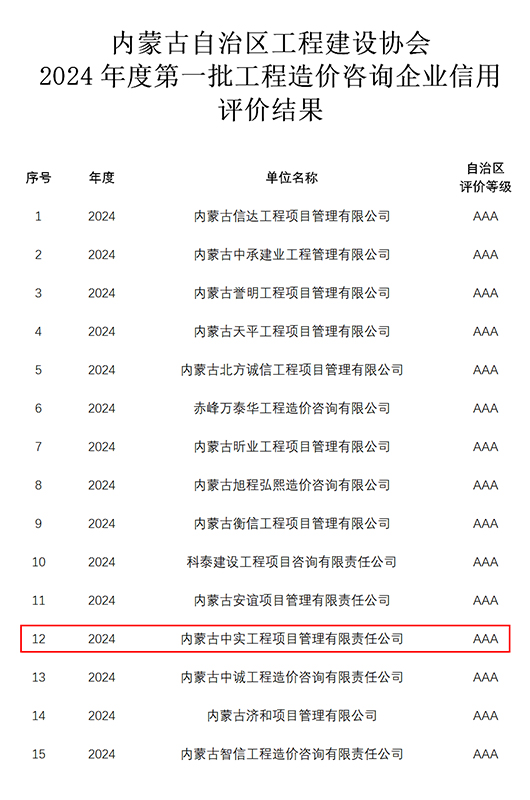 2024-07-3016927 次近期,我公司参加内蒙古自治区工程建设协会组织的“2024年度第一批工程造价咨询企业信用”申报,获得“信用AAA级证书”。我公司成立多年以来,遵循中国工程造价管理协会对造价咨询企…